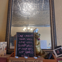 Welcome to Eramosa River Cafe, a charming culinary gem located at 185 Main St S, Rockwood, Ontario. This cozy cafe offers a delightful escape with its warm ambiance, perfect for gatherings or solitary reflections. The inviting decor, including a striking tin ceiling, adds to its appeal.